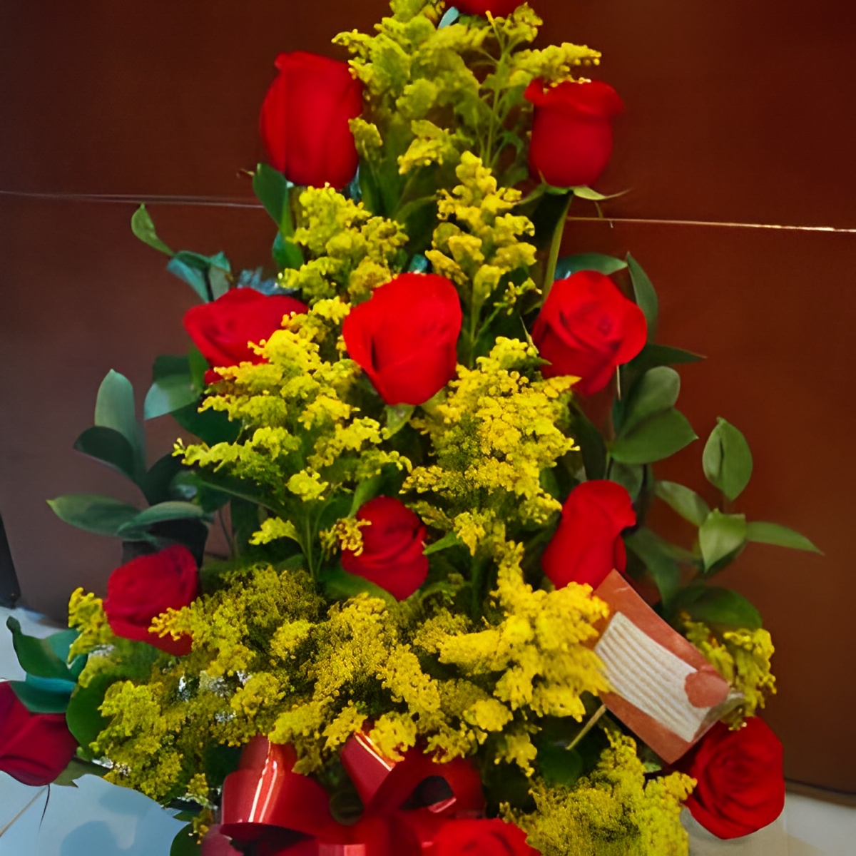Sé el primero en valorar “Piramide por 12 rosas y solidago R38”